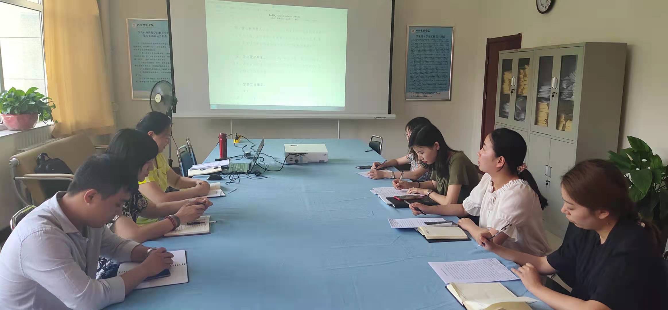 6月29日下午,在文华楼A325学生部会议室举行了2021年度学生部“优秀教育工作者”评选及师德师风学习活动。会议由学生部郝彬华副部长主持,孙占平、曹茜、霍嘉梅、温昕、寇娟、彭斌、杨婷、花莉柳参加了会议。