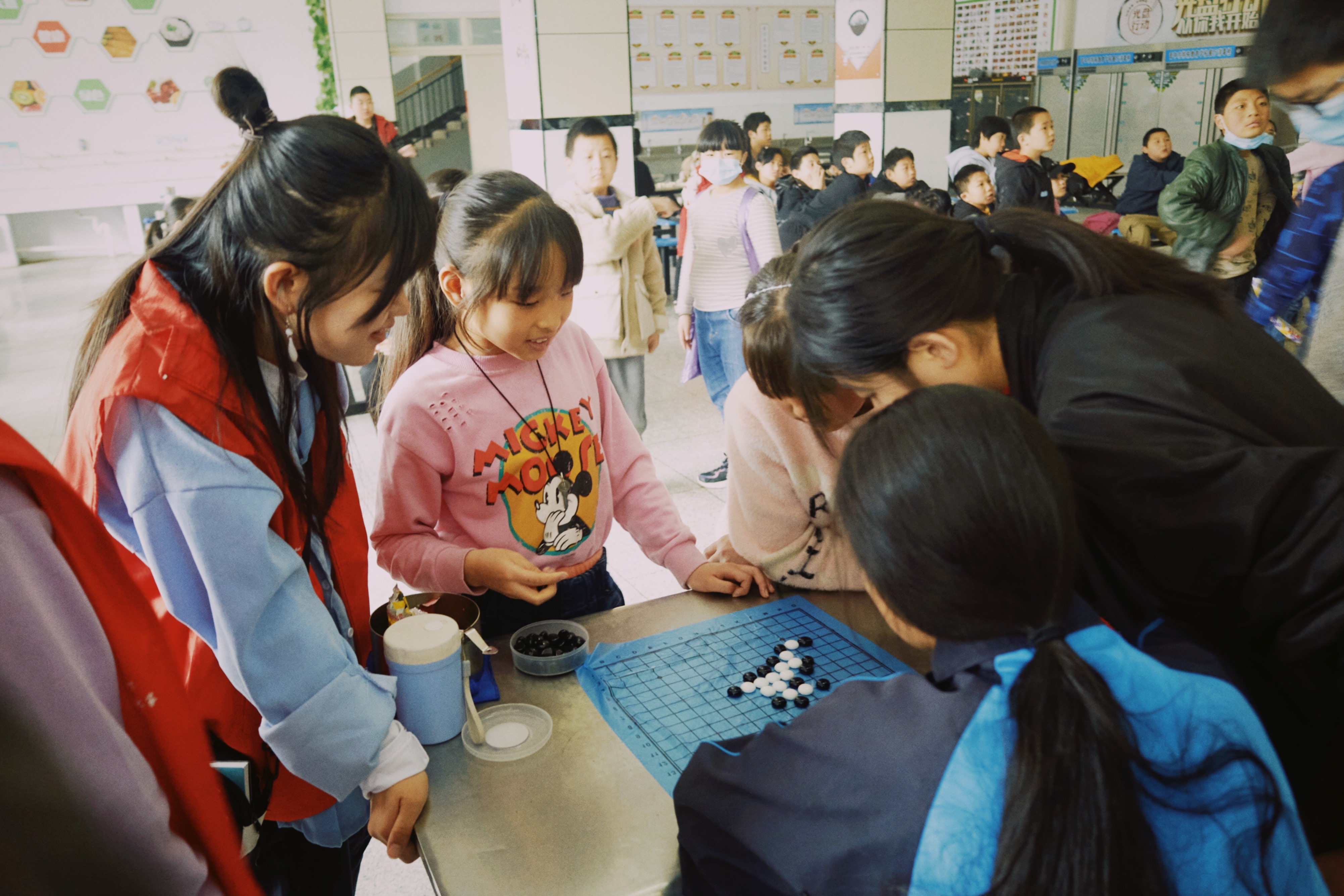 之后因为天气原因,校长让我们和小朋友去活动室玩耍,进入室内,志愿者们认识了更多的小朋友们,他们是有些腼腆的,不好意思与志愿者们交流,但是随着志愿者们耐心的陪伴与引导,小朋友们也逐渐打卡心扉,拉着志愿者们去打羽毛球,下棋,还会教志愿者们一些手语……