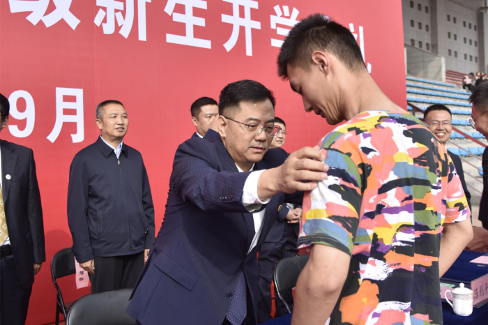 9月29日上午,我校2021级新生开学典礼在风雨操场举行。校领导吴刚、李伟、刘锐、陈利平、郭文平、郭卫东、王红叶、管晓刚出席。相关部门负责人、各二级学院主要负责人、新生辅导员及2021级全体新生参加。开学典礼由副校长管晓刚主持。
