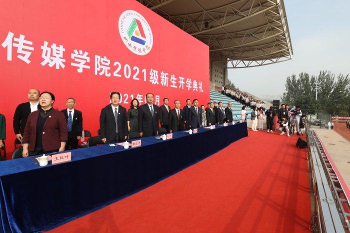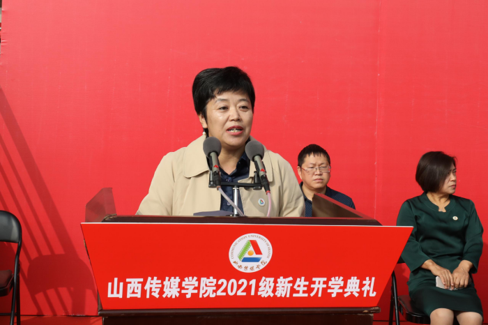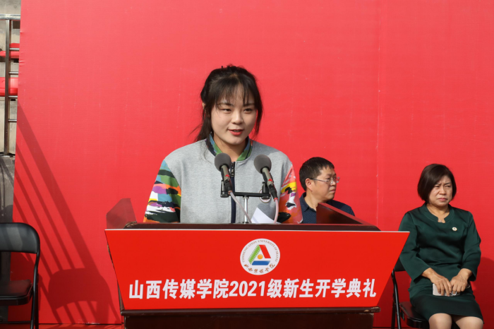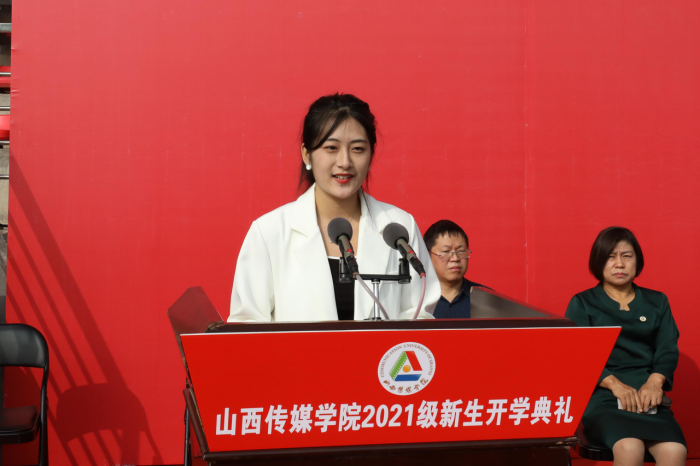 教师代表、播音主持学院符进叶教授,在校生代表、校学生会执行主席张琪婧,新生代表、新闻传播学院2021级新生戎如玉分别作了发言。