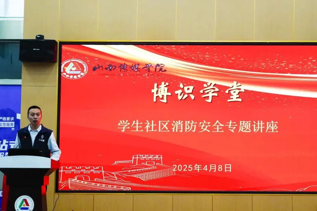 2025年4月8日,“博识学堂”第二期“消防安全”在“一站式”学生社区服务中心学习培训空间开讲。本次主题讲座由我校保卫部、学生部主办,邀请安全健康教育网的张俊文老师担任主讲,部分专兼职辅导员和学生骨干参加,旨在强化师生消防安全意识,提升应对火灾能力。