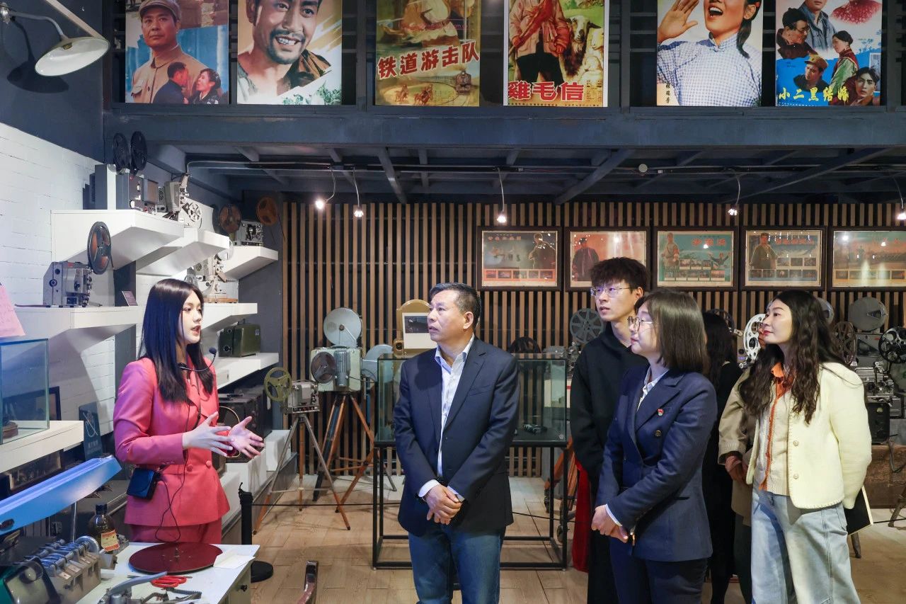 宋国平一行首站参观我校传媒博物馆,通过影像资料与实物展品深入了解学校传媒艺术教育特色。随后实地走访山传辅导员工作室及“一站式”学生社区服务中心,现场考察思政文创产品开发、功能区域规划、特色活动开展及社区管理运行情况。